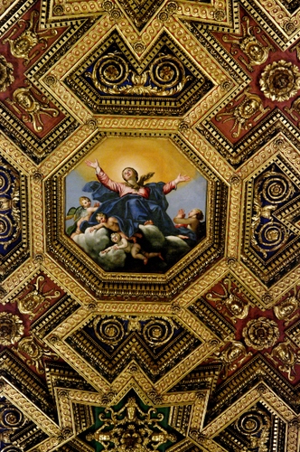 Tag: soffitto, angeli, oro, dipinto, madonna, geometrie, ottagono, chiesa, affresco.