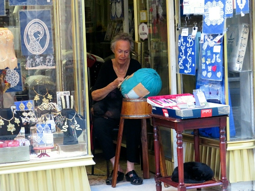 Eh sì. Era in un borgo delizioso, Offida,vicino a Ascoli. E forse non si vedono bene ma aveva un cane sulle ginocchia e un gatto sotto il tavolino |