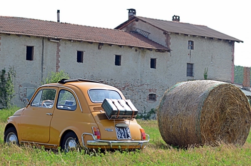 Tag: cinquecento, balla, automobile, fieno, valigia, paglia, cascina, giallo, macchina, covone, gialla, casolare.