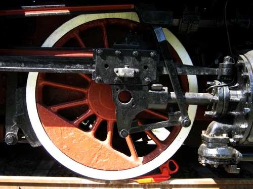 Ruota e stantuffo di una delle locomotive esposte al Museo della Scienza e della Tecnica di Milano.