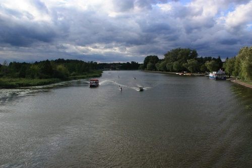 Tag: fiume, alberi, acqua, nuvole, cielo, verde, panorama, barche, battelli, paesaggio.