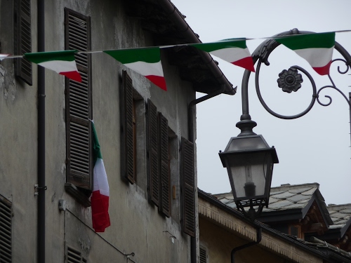 particolare dell'imbandieramento delle case e vie di Oulx, durante la festa della Repubblica