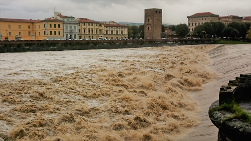 L'onda dell'Arno in piena alla pescaia di San Niccolo