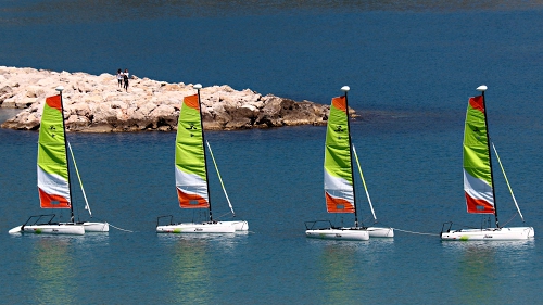 Tag: vele, mare, verde, bianco, rosso, quattro, barche, catamarani, persone, scogliera, scafi, acqua, azzurro, blu, imbarcazioni, scoglio, vela, fila, massi, imbarcazione.