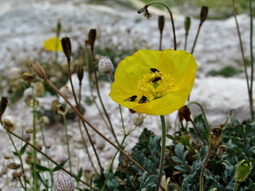 Probabilmente per la gente il papavero è rosso, ma sono belli anche quelli gialli di montagna. Certo non si trovano dei campi interi come quelli rossi, ma ciuffi isolati. |
