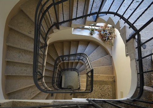 Altri tag (senza riscontro): balaustra, geometria, aste, condominio, grigio, nera, palazzo, prospettiva, palazzi, ferro, luci, davanzale, grigi, discesa, simmetria, scendere, passamano, ringhiere, ombre, metallo, salita, ferrata.