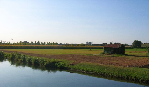 La Pianura Padana a est di Milano, attraversata dal Naviglio Martesana.