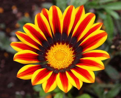 Tag: rosso, giallo, fiore, petali, corolla, margherita, foglie.