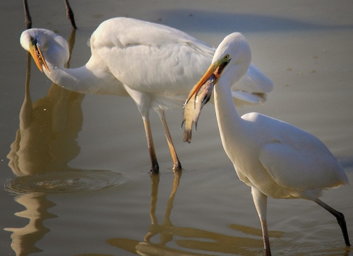 Simpatica e divertente interpretazione del tema, forse non si può parlare di invidia ma la postura dell'uccello a bocca asciutta a quello fa pensare ![]() |