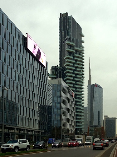 Milano Torre Solaria grattacielo di 143 metri e grattacielo UniCredit in vetro alto 230 metri.