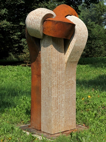 Tag: prato, bicolore, scultura, erba, verde, scritte, monumento, legno, statua, arte, nodo, alberi.