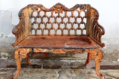 Tag: ruggine, ferro, panchina, muro, vintage, marrone, sedia, schienale, metallo, poltrona, divano, abbandono, decorazioni.