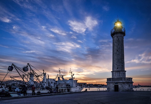 Tag: faro, porto, nuvole, luce, barche, pescherecci, tramonto, cielo, mare, lanterna, molo, azzurro, alba, torre, porta, imbarcazioni, persone.