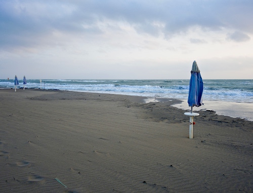 Foto dell'autore sangiopanza candidata al contest fotografico deserto su Dizy. Data inserimento: venerdì 22 marzo 2024. Titolo: Solo onde, sabbia ed ombrelloni.