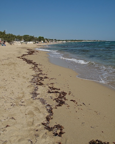 Battigia con alghe.