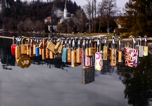 Foto dell'autore Diana Cocco candidata al contest fotografico lucchetti su Dizy. Data inserimento: mercoledì 24 luglio 2024. Titolo: Lucchetti sul lago di Bled - Slovenia