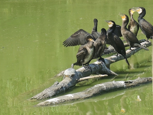 Foto dell'autore sangiopanza candidata al contest fotografico volatile su Dizy. Data inserimento: martedì 25 marzo 2025. Titolo: Cormorani e tartaruga.