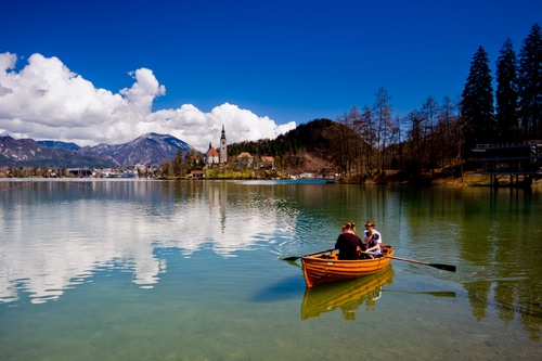 Tag: barca, lago, riflesso, nuvole, acqua, montagne, cielo, alberi, remi, riflessi.