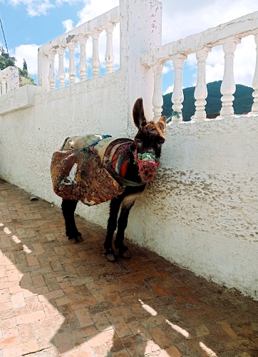 Foto scattata in Marocco, dove in alcune zone remote ancora viene usato l'asino. Qui in cerca di ombra mentre attende.