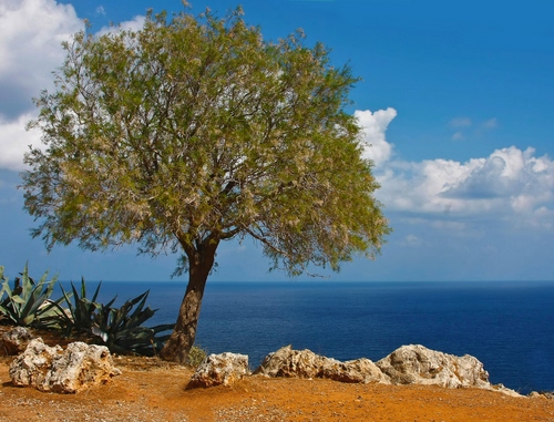Tag: albero, nuvole, mare, cielo, azzurro, piante, verde, sassi, foglie, rocce, acqua, tronco, orizzonte, agave, bianco, massi, rami.
