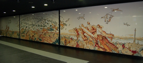 Napoli: metro di Montecalvario: Ilya ed Emilia Kabakov: "The flying - Le tre finestre" pannelli in ceramica
