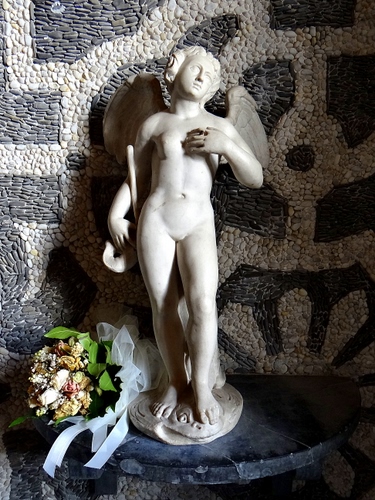 Tag: statua, fiori, angelo, ali, bouquet, marmo, mosaico, bianco.