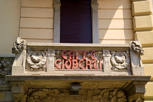vigevano balcone con insegna per bar sottostante