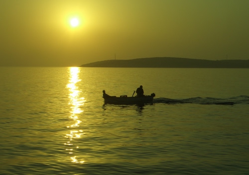Croazia, una piccola barca di pescatori guadagna lentamente il porto dopo una lunga giornata di lavoro.