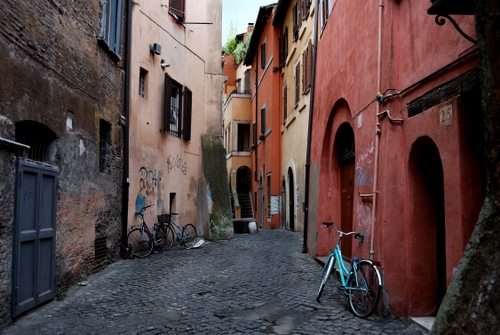 Scattata nel 2010 a Trastevere (ROMA). Passeggiando per le strade e i vicoli di uno dei quartieri più caratteristici di Roma mi sono trovato nell'unica strada non invasa da auto in sosta, solo bici forse abbandonate. Mi è sembrato che lo scatto non fosse facoltativo ma un obbligo.