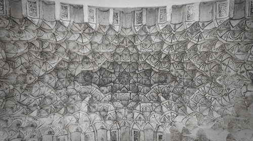 la foto è praticamente un bianconero "naturale" l'unico colore tolto è relativo alla tonalità di luce calda del sole andaluso, l'intenzione comune tra fotogafo e architetto dovrebbe essere di rappresentare un punto al centro dell'immagine lontanissimo ed irraggiungibile, come a dimostrare l'inifinità dell'universo