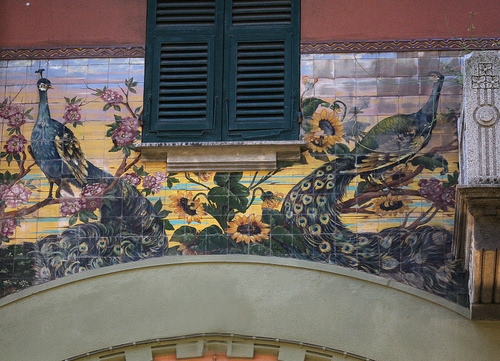 Altri tag (senza riscontro): peonie, veneziane, pavone, davanzale, disegno, arco, graffito, liberty, palazzo, mattonelle, finestre, mosaico, ante, uccelli, balcone, colori, pittura, fiori.
