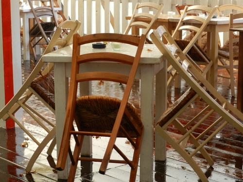 Tag: sedie, legno, paglia, tavolini, posacenere, pioggia, bianco, tavoli, tavolo, bicchiere, bagnato, marrone, bar, bagnate.