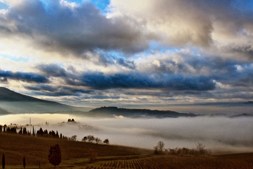 352° Nebbie mattutine in diradamento | 412° Colline che spuntano fra le nebbie |