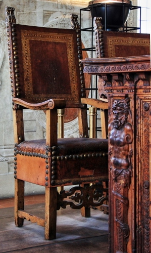 272° Antiche sedie in un museo | 392° Tre sedie in attesa di ammiratori (dell'affresco) |
