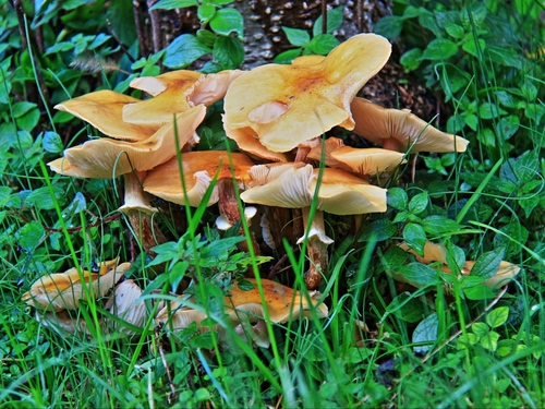 Funghi fra l'erba di un giardino
