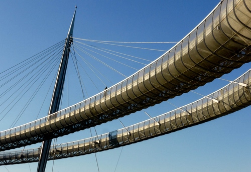 Altri tag (senza riscontro): sospesi, stralli, sospeso, geometrie, pilastri, funi, geometrico, architettura, fili, vetri, trasparenze, viadotti, azzurro, altissimi, corde.