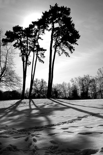 Tag: neve, alberi, orme, controluce, ombre, bianconero, inverno, bianco.