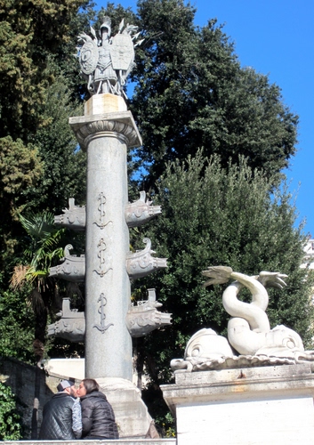 Roma, al Pincio, progettate da Giuseppe Valadier nel 1828. Colonne in granito grigio provenienti dal Tempio di Venere e Roma cui furono aggiunti dei rostri e dei trofei di armi.
