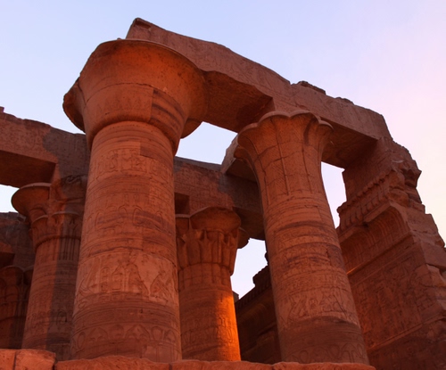 Colonne del tempio di Kom Ombo all'ora del tramonto.