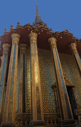 Colonne sulla facciata di un tempio nel grande complesso del Palazzo Imperiale di Bangkok.