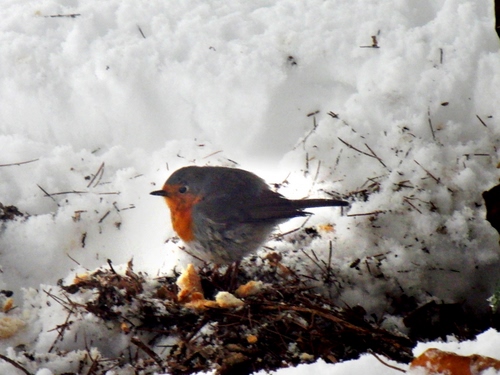 Un pettirosso che sembra gradire le mie briciole.