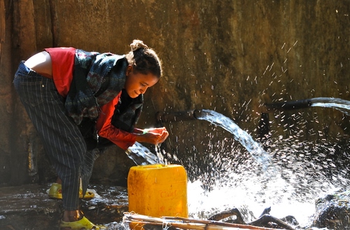 Tag: acqua, donna, fontana, tanica, giallo, ragazza, schizzi.
