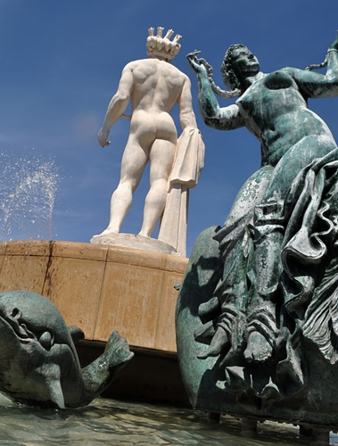 fontana dedicata al re sole, pare che la statua centrale avesse, per alcuni benpensanti, l'attributo maschile troppo grande, per questo è stata rimossa, rivisitata per portarla alle dimensioni consone, e rimessa al suo posto.