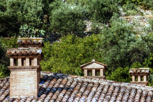 Tag: alberi, comignoli, tegole, verde, tetto, tetti, quattro, casa, comignolo, coppi, bosco.