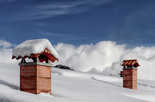 Tag: neve, bianco, inverno, comignoli, due, nuvole, cielo, tetto, camini.
