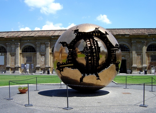 Roma, musei Vaticani, scultura di Pomodoro nel cortile della Pigna.