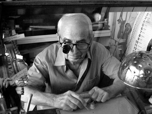 Foto dell'autore Aldo Fiorenza candidata al contest fotografico artigianato su Dizy. Data inserimento: domenica 2 agosto 2015. Titolo: l'ultimo artigiano orologiaio