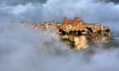 Tag: castello, panorama, città, montagne, case, nebbia, cielo, verde, erba, paese, montagna, azzurro, monti, alberi, foschia.