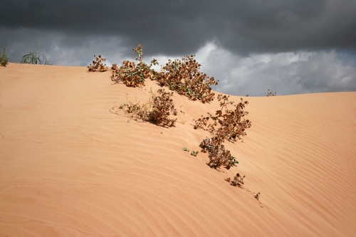 Bel contrasto fra il colore della sabbia e il cielo tempestoso. |