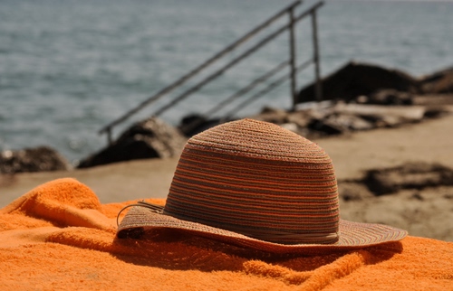 Tag: cappello, arancione, asciugamano, mare, paglia, acqua, spiaggia, ringhiera, scala, arancio, telo.
